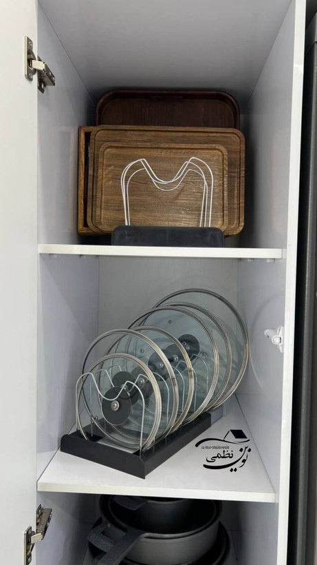 با این استند کشویی علاوه بر درب قابلمه میتونی به انواع تابه و سینی و قابلمه هم نظم بدی👌