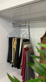 🌻بعد از آویز کردن لباسها کافیه یکی از قلاب ها رو آزاد کنید تا آویز به صورت عمودی قرار بگیره و میبینید که تاثیر زیادی تو چند برابر شدن فضای کمد داره